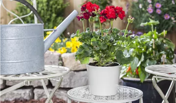 Die Zonal-Pelargonie setzt schöne Akzente gemeinsam mit: