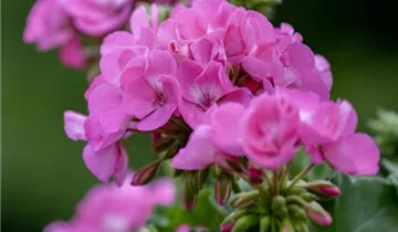 Die Zonal-Pelargonie (Pelargonium zonale) ist eine beliebte Pflanze für den Balkon. Die unzähligen Blüten erscheinen, je nach Sorte, in verschiedenen Farben die ganze Saison hindurch. Ein sonniger bis halbschattiger Standort und ein durchlässiges Substrat werden bevorzugt.
