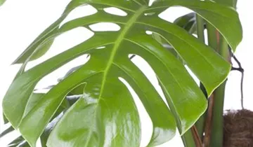 Die Blätter der Monstera sind dunkelgrün, herzförmig.