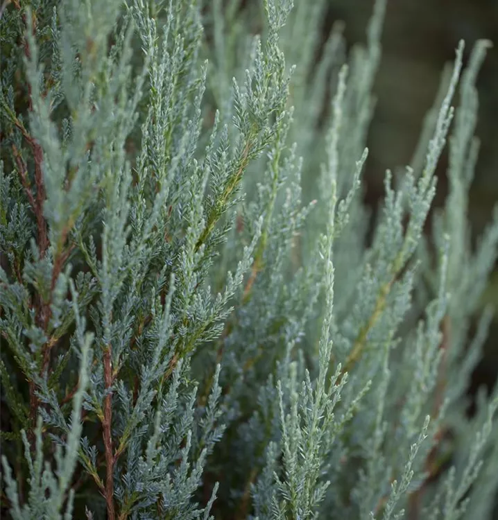 Der Virginische Wacholder 'Blue Arrow' ist immergrün. Seine Nadeln sind blau-grau, schuppenförmig.