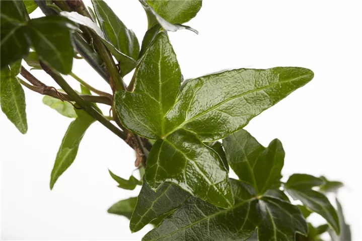 Die immergrünen Blätter des Gemeinen Efeus sind dunkelgrün, herzförmig, ledrig, wechselständig, gelappt. Diese sind etwa 5 - 12 cm groß.