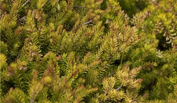Schneeheide ist ein buschig, dicht und kriechend wachsender Zwergstrauch, der eine Höhe von 15 - 40 cm und eine Breite von 30 - 50 cm erreichen kann.