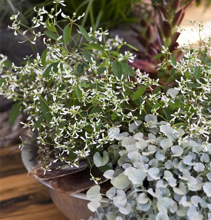Der Zauberschnee (Euphorbia hypericifolia) ist eine weiß blühende Pflanze. Diese buschige Pflanze gedeiht am besten an einem sonnigen bis halbschattigen Standort.