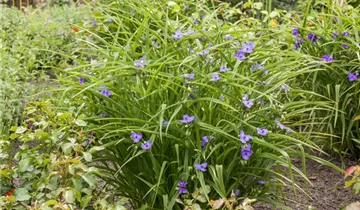 Die Garten-Dreimasterblume (Tradescantia andersoniana) ist eine aufrechte Staude, die von Juni bis September violette, schalenförmige Blüten bildet. An einem sonnigen bis halbschattigen Standort mit durchlässigem, nährstoffreichem Boden erreicht sie gewöhnlich eine Höhe von ca. 50 cm und wird ca. 40 cm breit. Die Garten-Dreimasterblume ist gut frostverträglich.