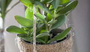 Der Geldbaum (Crassula ovata) besitzt dickfleischige Blätter. Diese aufrechte Pflanze gedeiht am besten an einem sonnigen Standort.