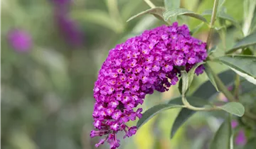 Die purpurroten Blüten des Sommerflieder 'Royal Red' erscheinen in Rispen von Juli bis Oktober. Diese werden etwa 30 - 50 cm groß und sind stark duftend.
