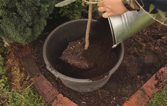 • Im Laufe der Zeit gehen der Erde einige wichtige Eigenschaften verloren. Daher sollten die Pflanzen alle zwei Jahre im Frühjahr in einen größeren Topf mit frischer Kübelpflanzenerde gepflanzt werden.