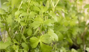 Der Liebstöckel (Levisticum officinale) ist eine Kräuterpflanze mit einem würzigen Geschmack. Seine mittelgrünen Blätter sind gefiedert und gezähnt. Für das optimale Wachstum des Liebstöckels werden ein sonniger Standort und durchlässiger, nährstoffreicher Boden benötigt.