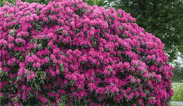 Der Rhododendron 'Nova Zembla' (Rhododendron) bringt von Ende Mai bis Mitte Juni ein wahres Meer aus purpurroten bis schwarzen Zeichnung Blüten hervor. Dieses breit, locker wachsende Gehölz erreicht gewöhnlich eine Höhe von 1,5 - 2 m und eine Breite von 1,5 bis 2,5 m. Ein halbschattiger (bis schattiger) Standort und ein humoser, kalkfreier Boden schaffen optimale Bedingungen für ein gesundes Wachstum. Der Rhododendron 'Nova Zembla' ist gut frostverträglich.