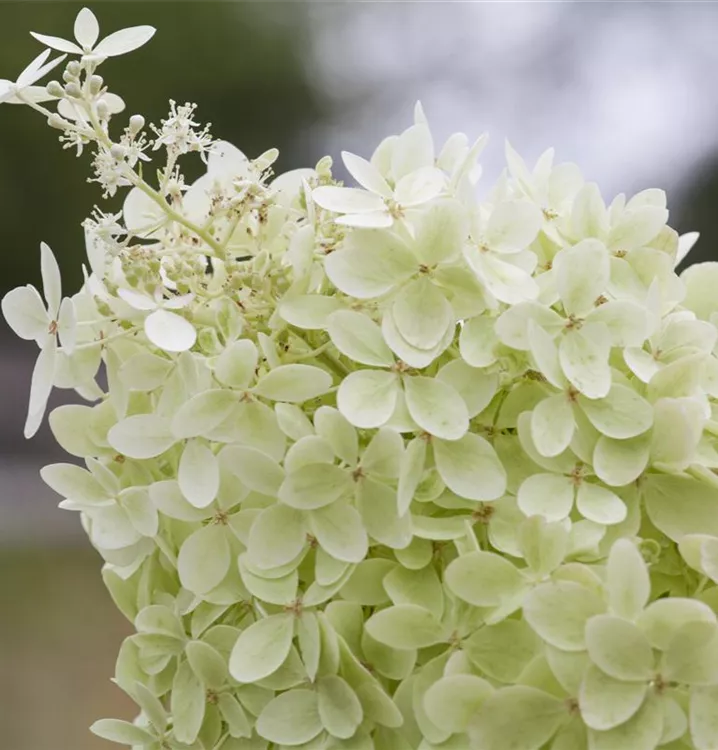 Die weißen Blüten der Rispenhortensie 'Limelight'(s) erscheinen in Rispen von August bis Oktober. Diese sind angenehm duftend.