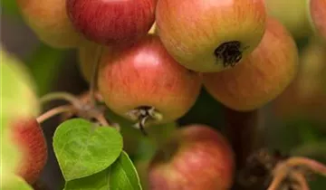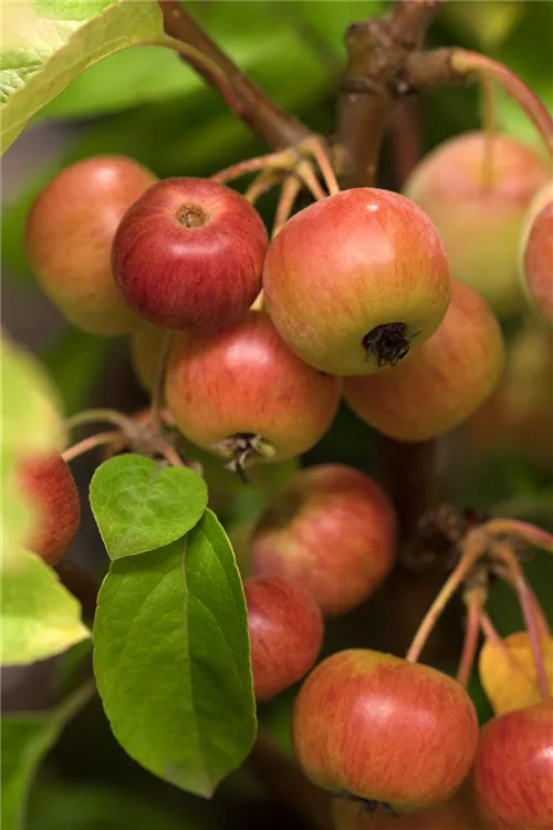 Besonders dekorativ sind die orange-roten, runden Früchte von Malus 'Evereste'®. Diese erscheinen ab August und sind klein.