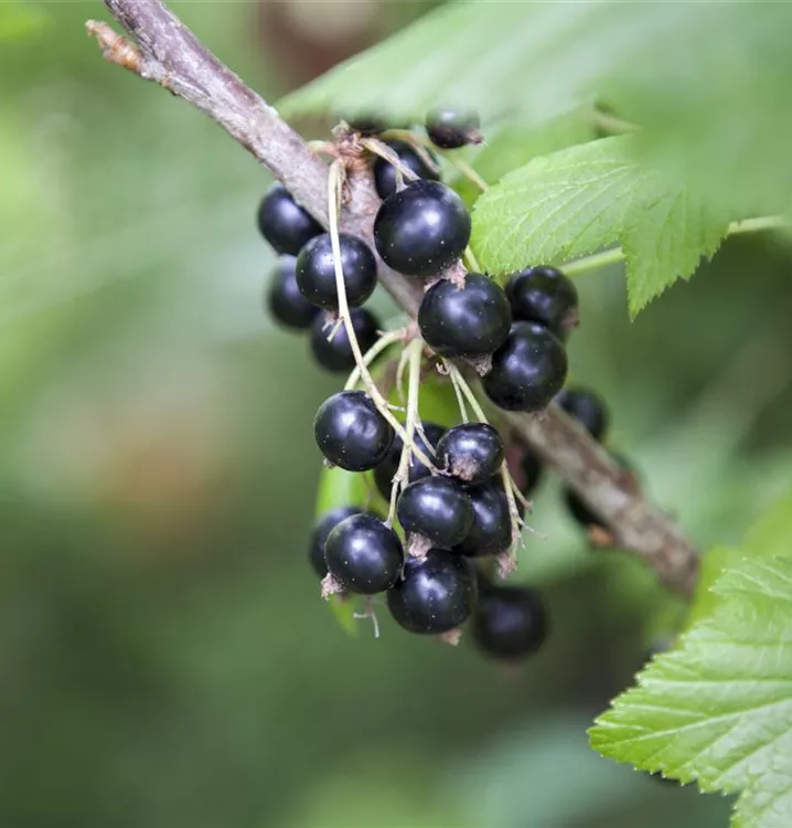 Die Schwarze Johannisbeere (Ribes nigrum) bildet schwarze Beeren. Diese sind süß-säuerlich im Geschmack. Für eine ertragreiche Ernte ab Juli schaffen durchlässiger, nährstoffreicher Boden und ein sonniger bis halbschattiger Standort optimale Bedingungen. Auch ihre grün-roten Blüten sind eine schöne Erscheinung.
