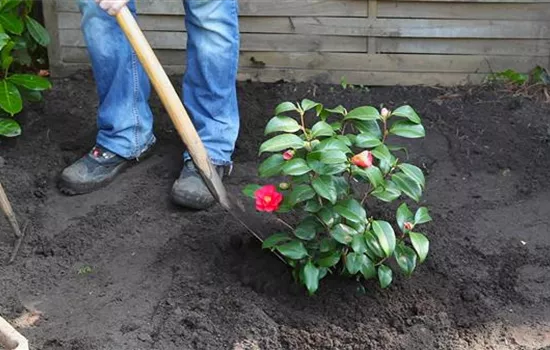 Die Japanische Kamelie (Camellia japonica) ist eine sehr beliebte Kübelpflanze. Ihre dekorativen Blüten erscheinen von Februar bis Mai. Verwenden Sie bevorzugt die spezielle Kübelpflanzenerde, denn sie verdichtet sich über längere Zeit nicht.