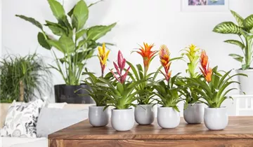 Die Vriesea (Vriesea) blüht über Monate hinweg. Je nach Sorte, erscheinen die dekorativen Blüten in den Farben Rot, Orange und Gelb. Bevorzugt wird ein sonniger Standort und eine durchlässige Erde.