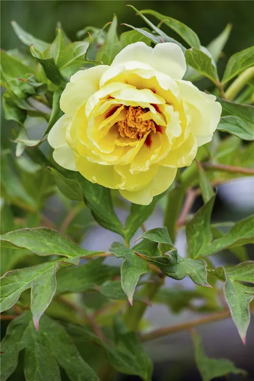 Paeonia x suffruticosa, gelb ist ein Flachwurzler.
