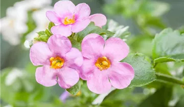 Die Großblütige Schneeflockenblume, rosa (Sutera grandiflora) ist eine beliebte Pflanze für den Balkon, die während der gesamten Saison unzählige rosafarbene Blüten bildet. Ein sonniger bis halbschattiger Standort und ein durchlässiges Substrat werden bevorzugt.