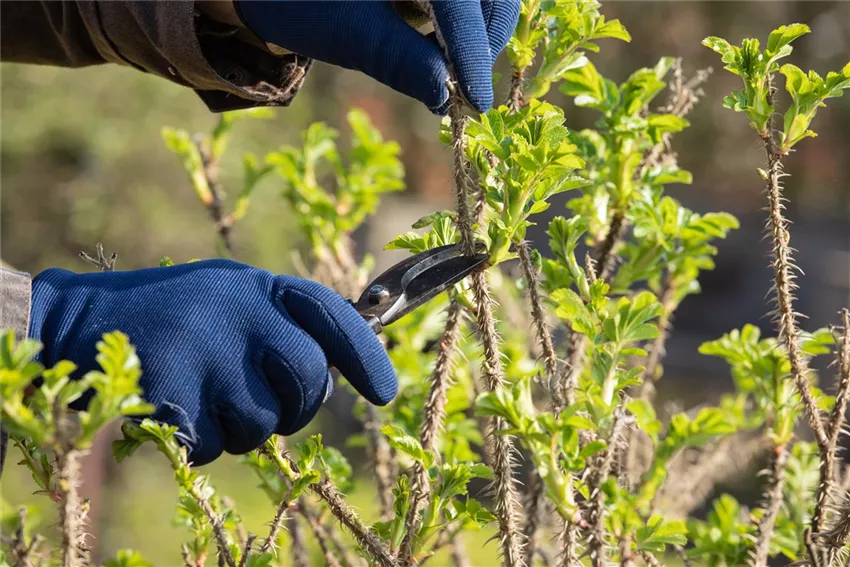 Beim Entfernen von Verblühtem bei der Rosenpflege im Sommer sollte nicht direkt unter der welken Blüte geschnitten werden, sondern am besten einen halben Zentimeter über dem ersten gut ausgebildeten Fünferblatt, da sich unter diesem Blatt eine kräftige Knospe befindet. Ein höherer Schnitt bei der Rosenpflege im Sommer führt meist nur zu schwachen Neutrieben, die kleine Knospen bilden. Bei Rosenarten, die im Büschel blühen, sollte der komplette verblühte Blütenstand bis zum ersten Blatt entfernt werden. Wird hier bei der Rosenpflege im Sommer zu stark zurückgeschnitten, wird die Holzbildung gefördert und die zweite Blüte verzögert sich. Bei Edelrosen wird bis auf das erste vollständige Blatt zurückgeschnitten und bei langstieligen Edelrosen ist zu beachten, dass der Schnitt bis zur Wuchshöhe des Strauches reicht.